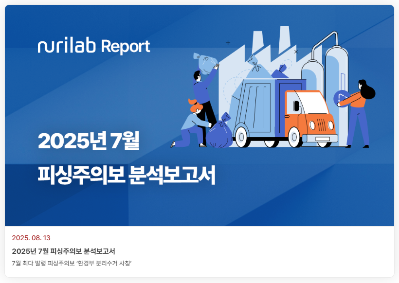 | 누리랩, 7월 피싱 주의보 79건 발령…’환경부 분리수거’ 사칭 최다 (1) | 2025.08.07 |