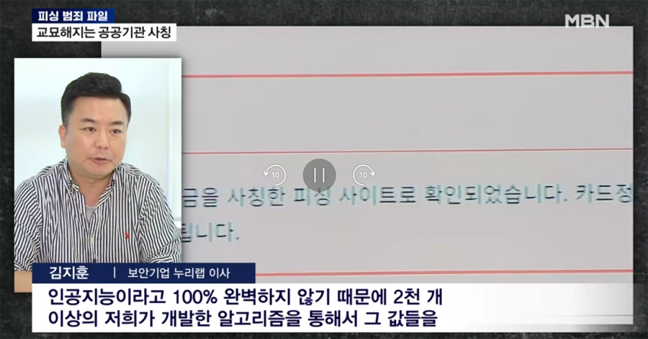 ▶ 공공기관 사칭 피싱 관련 누리랩 김지훈 연구소장 인터뷰 영상