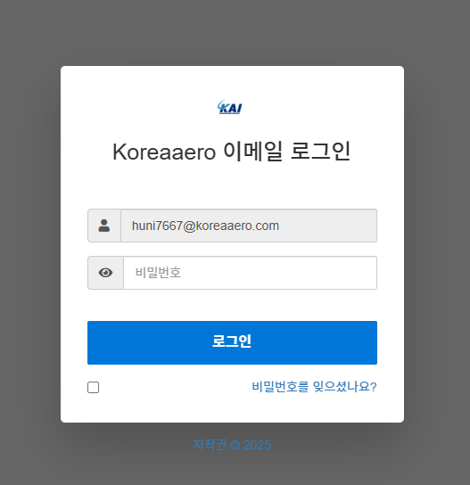 📌 KAI(한국항공우주산업) 계정 탈취 목적의 피싱 사이트를 주의하시기 바랍니다.