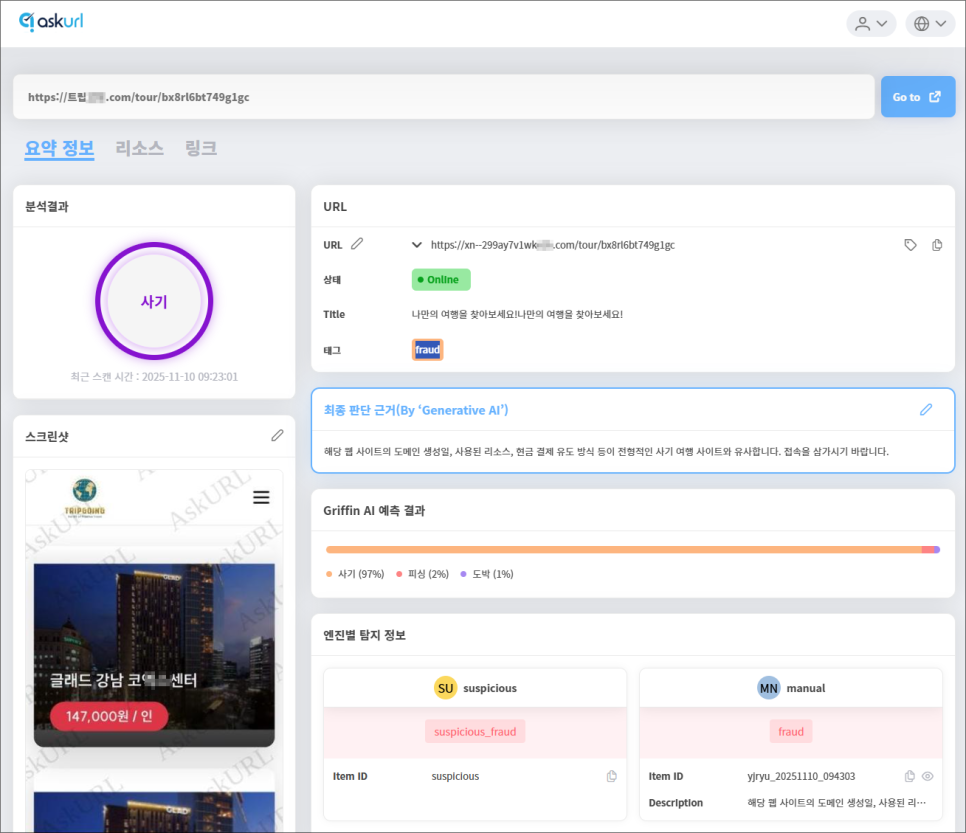 그동안 누리랩은 피싱 사이트에 대한 정보를 빠르게 전달하며 사용자들의 피해를 줄이는 데 집중해 왔습니다. 하지만 이제는 여기서 한 걸음 더 나아가, 피싱을 넘어 다양한 사기 사이트에 대한 정보까지 제공하게 되었습니다.