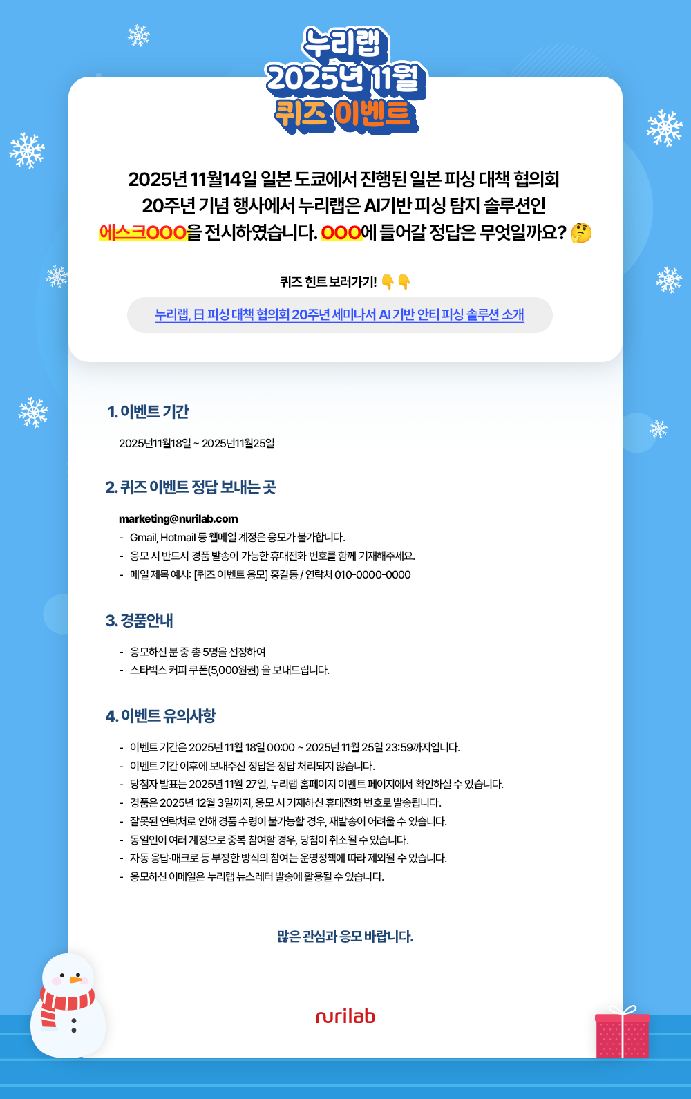 ♥ 누리랩이 '2025년 11월 퀴즈 이벤트'를 진행합니다~