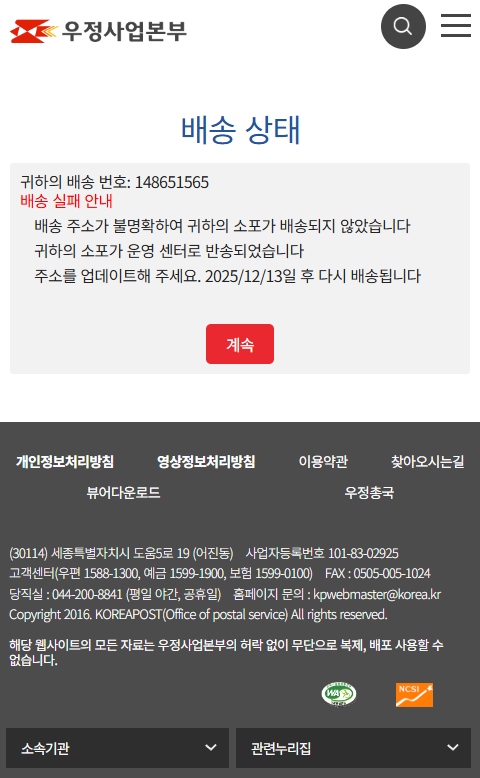 📌 우정사업본부 사칭 피싱 사이트를 주의하시기 바랍니다.