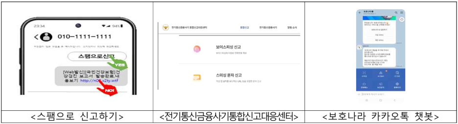 - 전기통신금융사기통합신고대응센터 내 ‘스미싱 문자 신고’